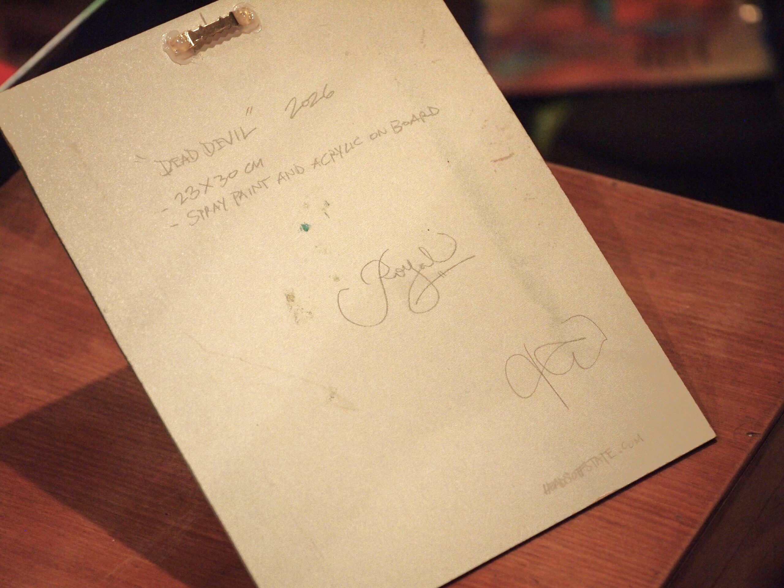 23x30cm. Spray paint and acrylic on board.