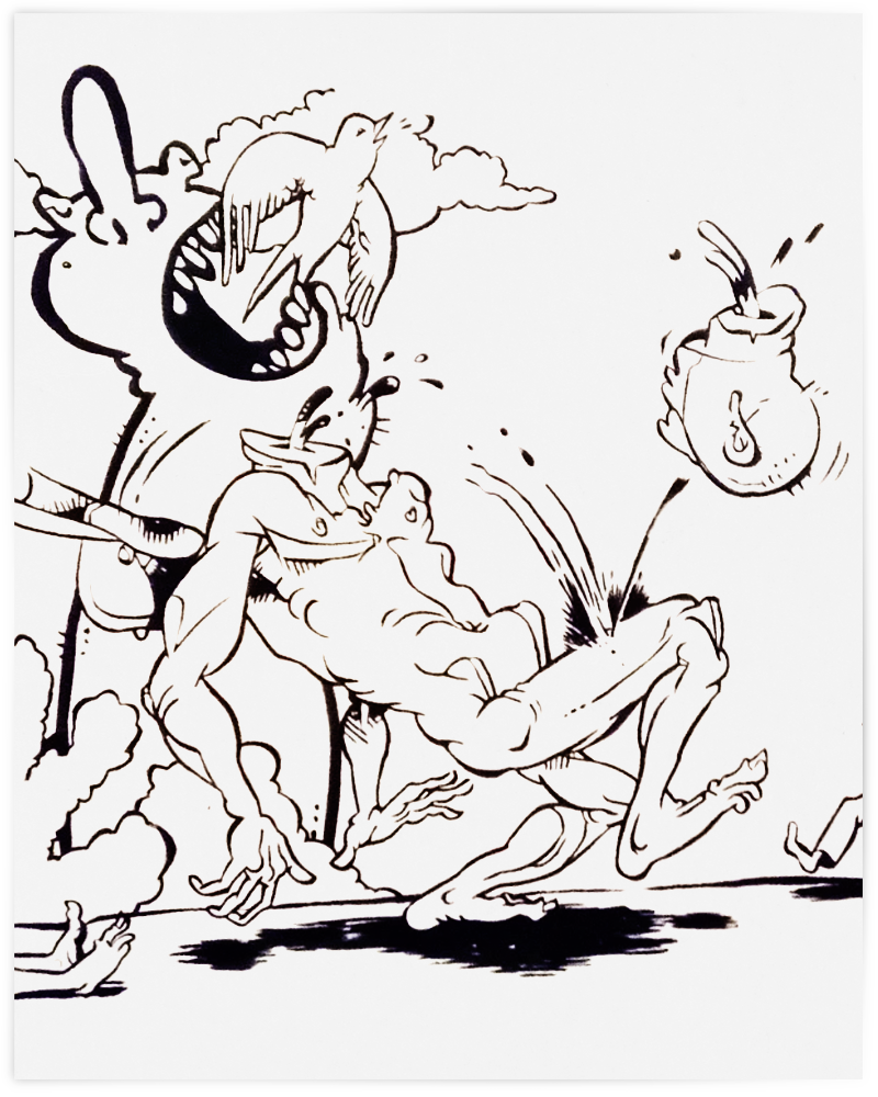 Graphism. The Beheading of Ordinary Man. Print – 8×10. Ink on textured paper.